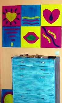 Der Farbwert der Kachel ist in der Gesamtinstallation 9x 12 Kacheln =3,60m x 4,80 m wichtiger als das Motiv.